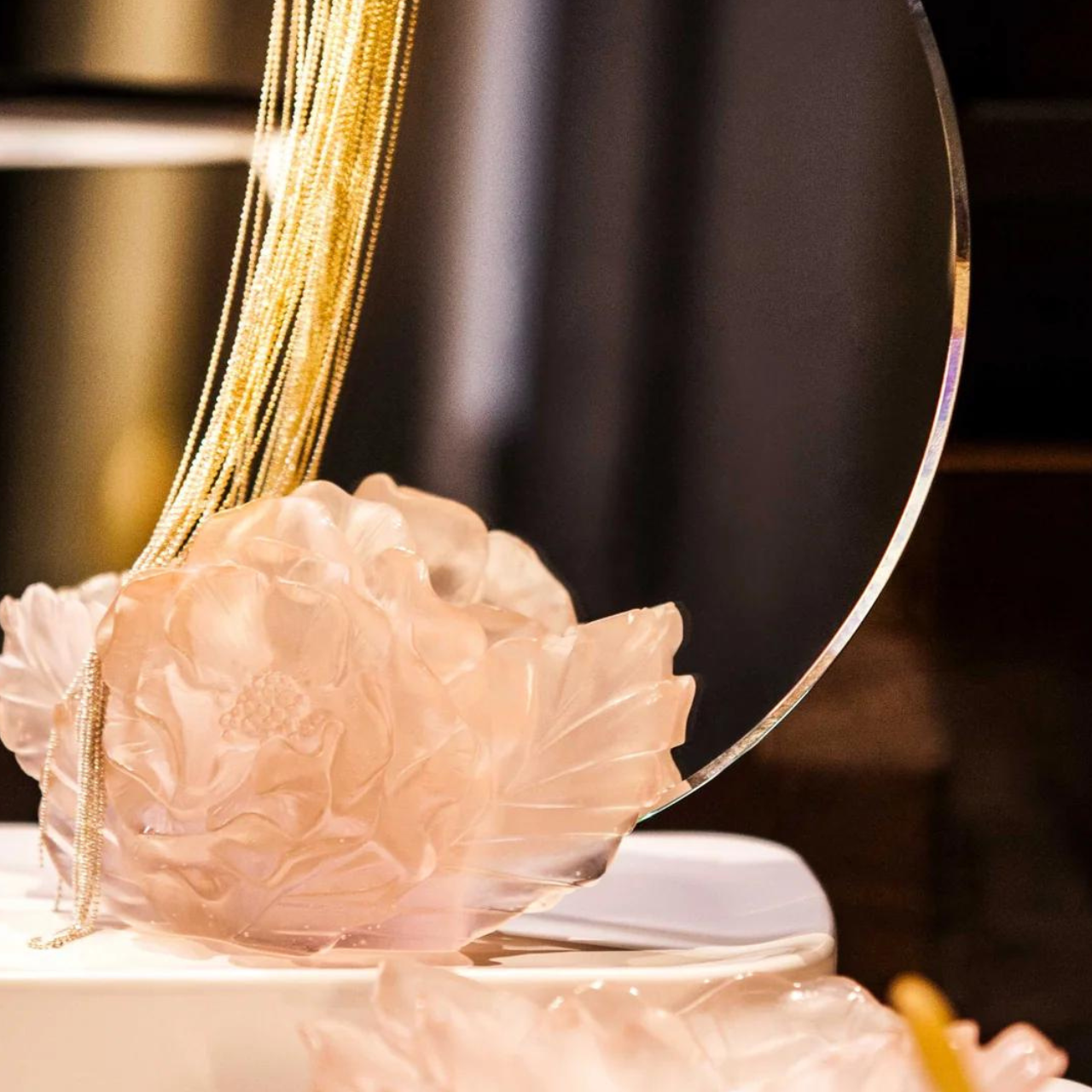 The Camellia collection, delicate and refined, invites you on a promenade in a magnificent winter garden. Daum draws its inspiration from one of the several varieties of the Camellia, the Spring Festival Camellia. The Daum atelier chose this particular species for its dense petals in movement, which capture light and give life to the material.