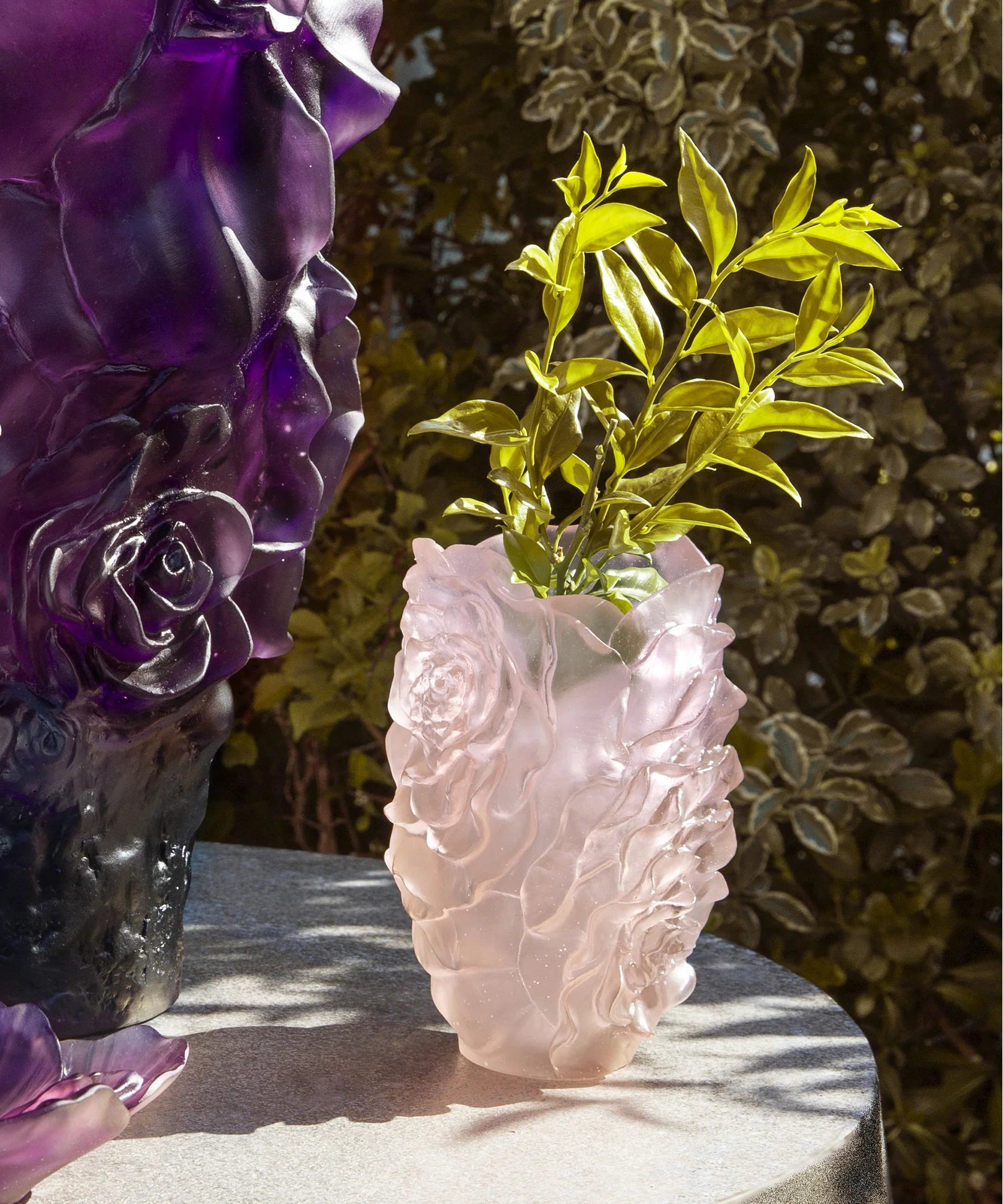 The Camellia collection, delicate and refined, invites you on a promenade in a magnificent winter garden. Daum draws its inspiration from one of the several varieties of the Camellia, the Spring Festival Camellia. The Daum atelier chose this particular species for its dense petals in movement, which capture light and give life to the material.
