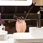 The Camellia collection is available in two colours: a subtle powdered pink, a fresh and romantic colour that contrasts with the intense violet, a mysterious and noble tone. The collection also offers the possibility to mix these contrasted colours to create a personalized and elegant ambiance