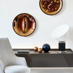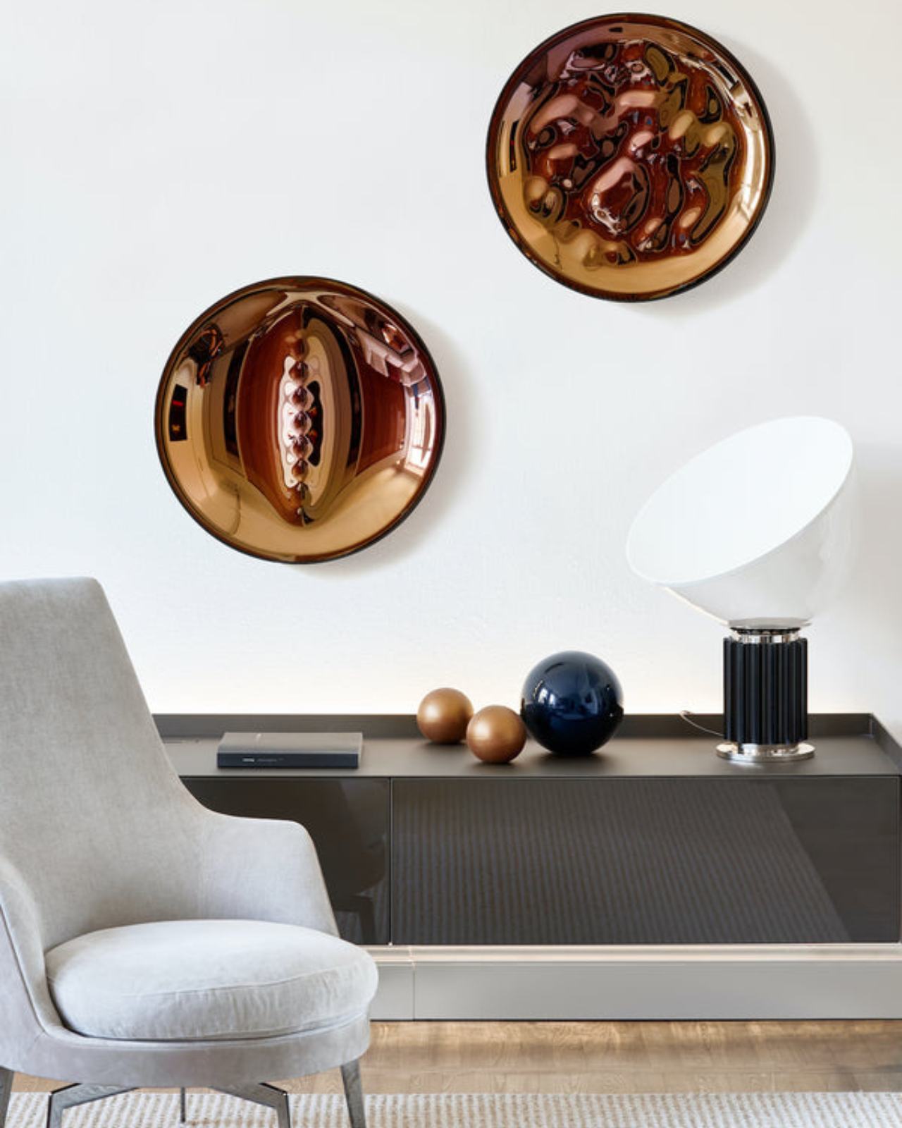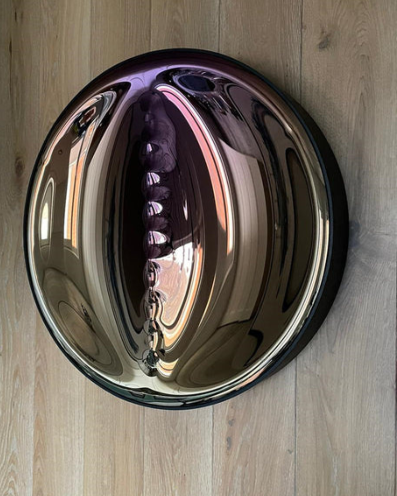Venus - a piece from a Sun&Moon collection of custom-made fused glass and titanium artworks. The author's exclusive technique ensures that each item is one-of-a-kind, and the stunning mirrored titanium coating and rugged glass surface create a striking interplay of reflections. The artwork comes in a beautifully crafted burned oak frame, adding an extra touch of sophistication.